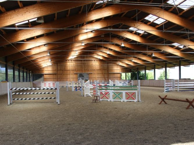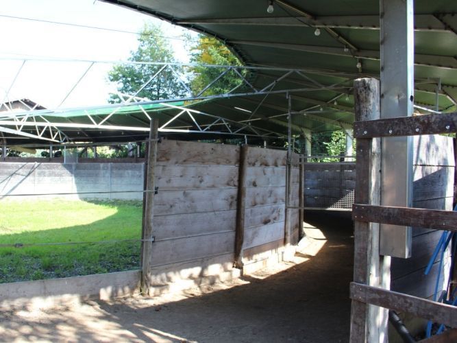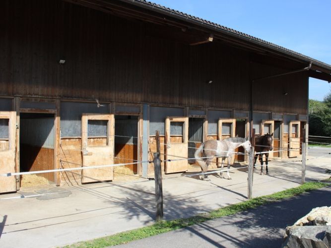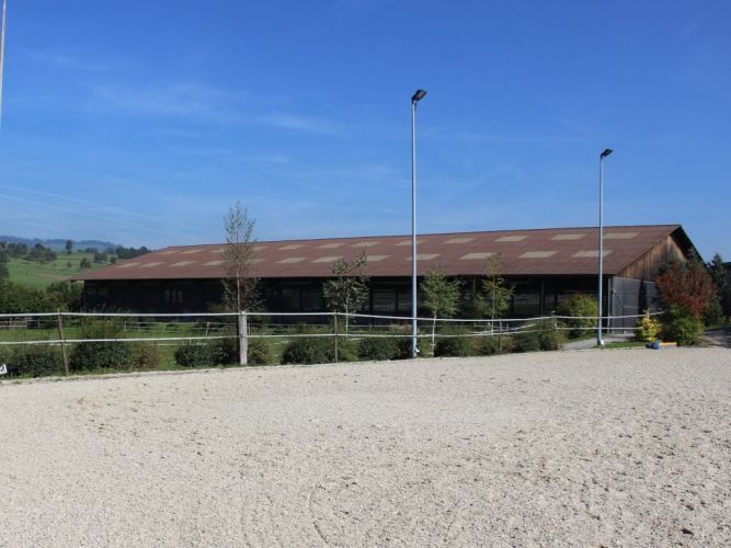 Sämtliche Boxen verfügen über einen eigenen Auslauf und bieten mit dem grossen Sandviereck, der Reithalle (28m x 60.5m) und der Führanlage ideale Trainingsbedigungen.